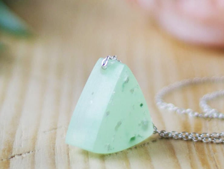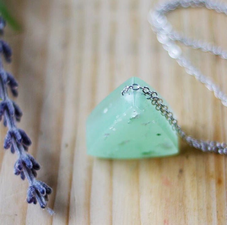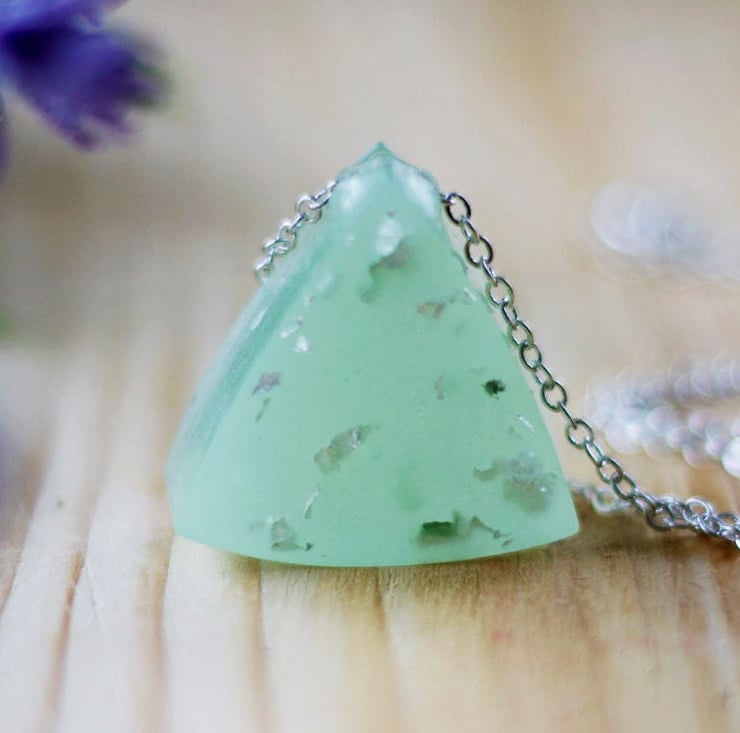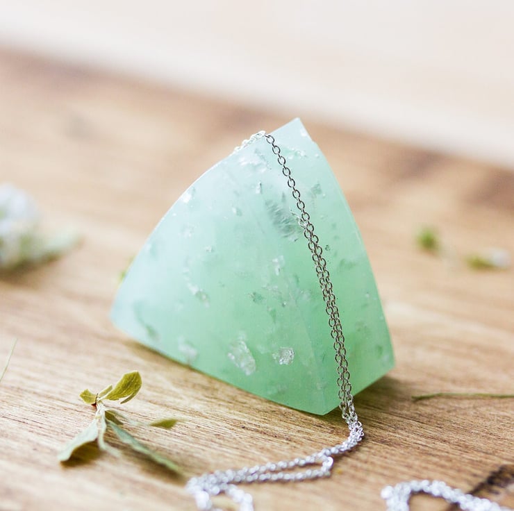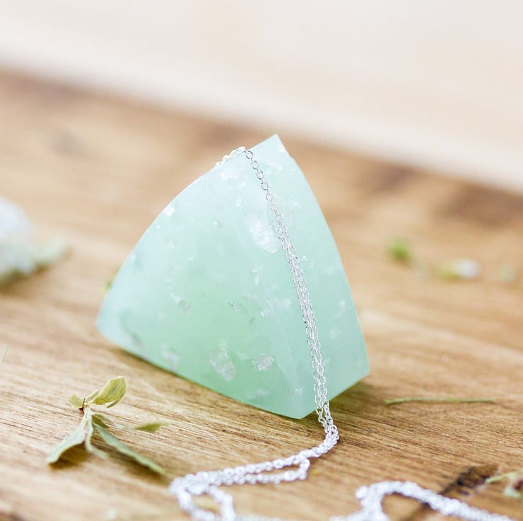 So drifty and light... palest, gentlest shade, semi-translucent so you can see the silver floating inside. The chain goes through the pendant, so it hangs extra beautifully. This necklace can be dressed up or down, but it was made for peaceful, gentle souls.