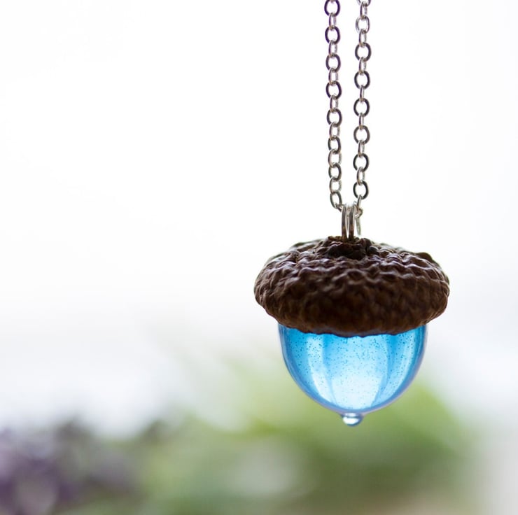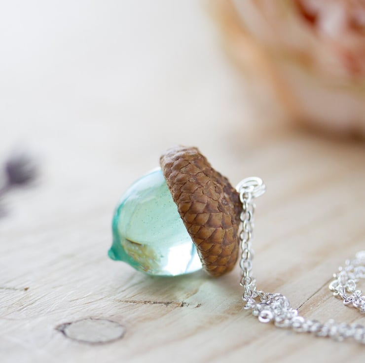 Acorn Necklace Aqua Real Flower Jewellery Gifts for Her Acorn Jewelry Resin Neck