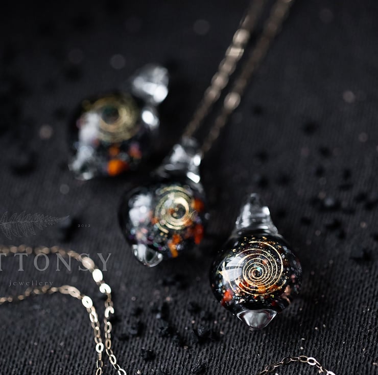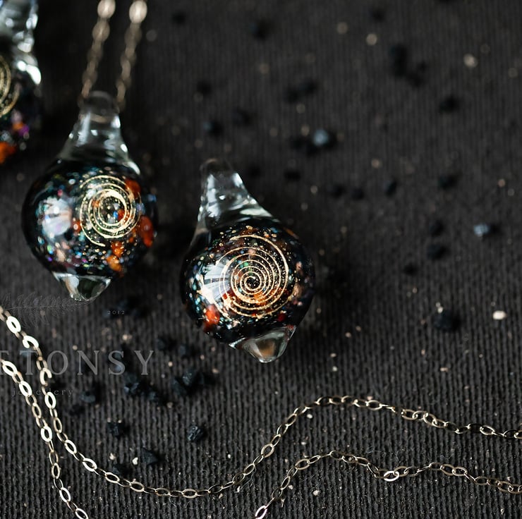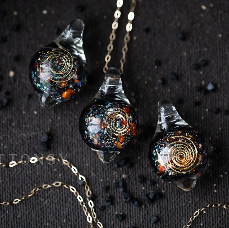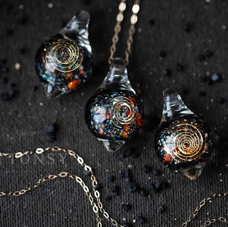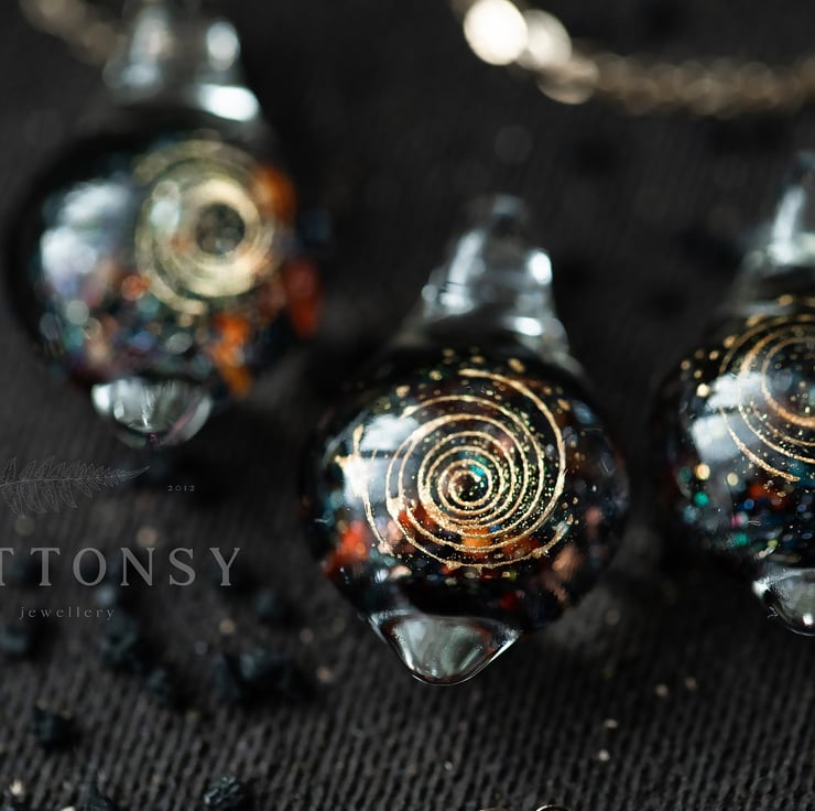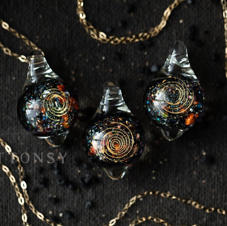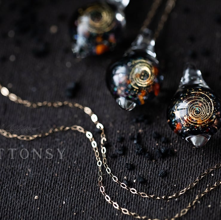 Our Starry Sky necklaces are related to our signature Night Sky necklaces - they have all the depth and detail, and unlike the original Starry Sky necklaces, these have their golden galaxy...