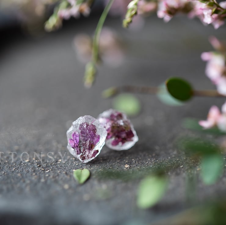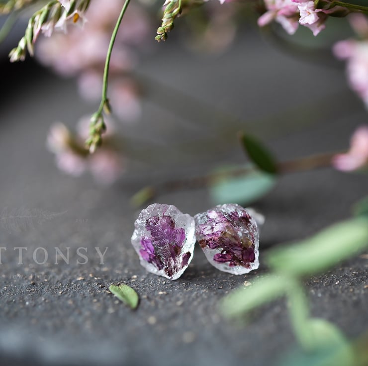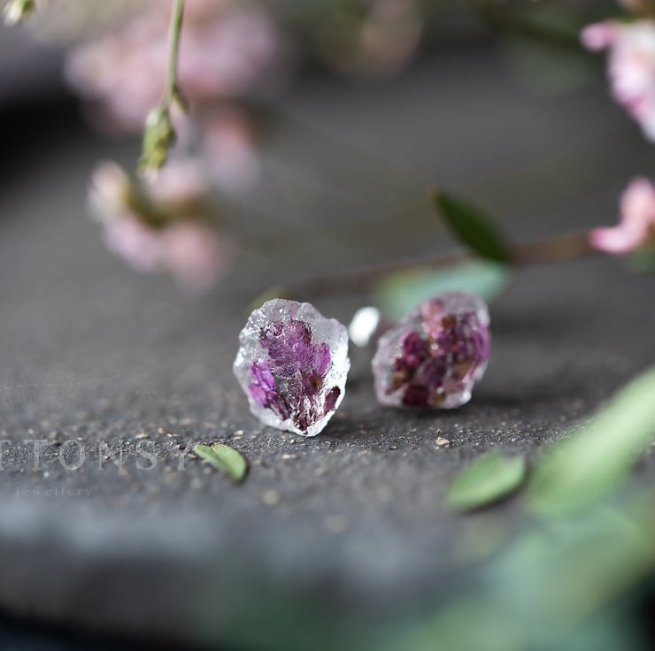 Flower Ear Rings Ice Earrings Purple Flowers Botanical Jewellery Pressed Flowers