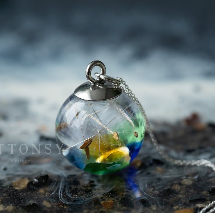 Sea Glass Necklace Dandelion Necklace Dandelion Wishes and Sea Glass Resin Neckl