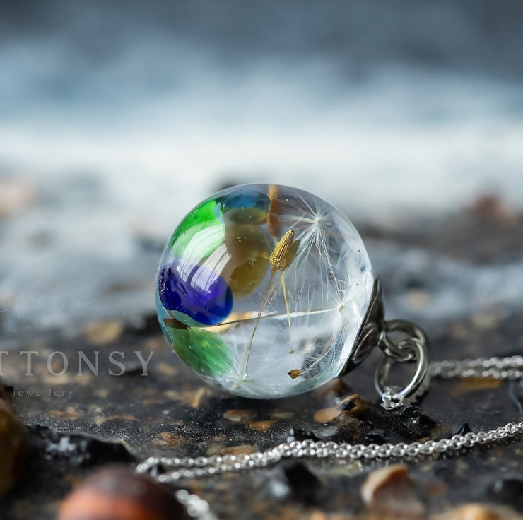 Sea Glass Necklace Dandelion Necklace Dandelion Wishes and Sea Glass Resin Neckl
