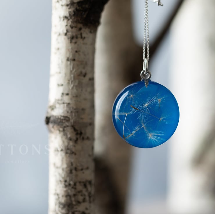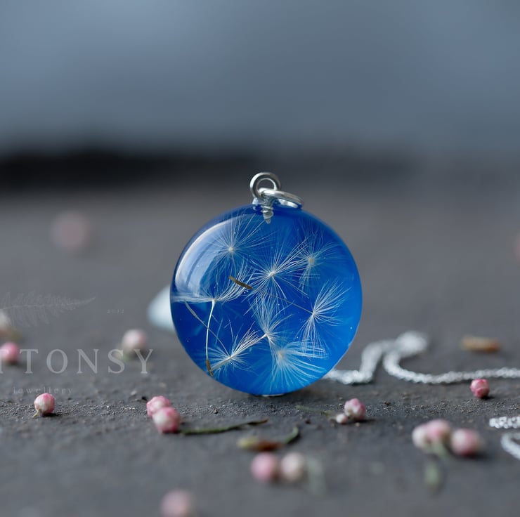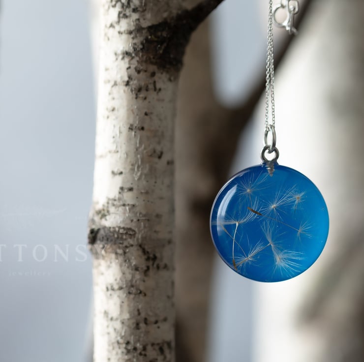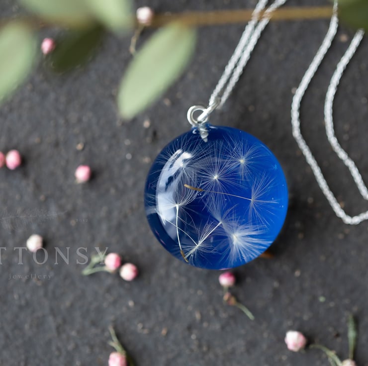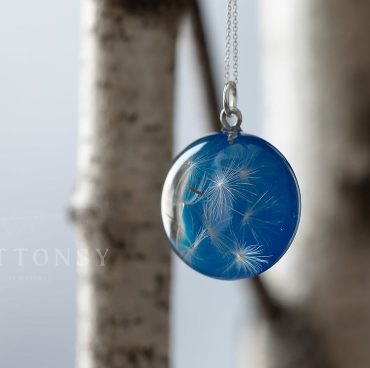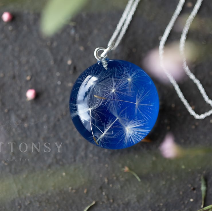 Beautiful dandelion wishes have been caught in a gorgeously, tactile "pebble". This is truly magical jewellery. It is delicate, and elegant, for women that love to dance in the rain.