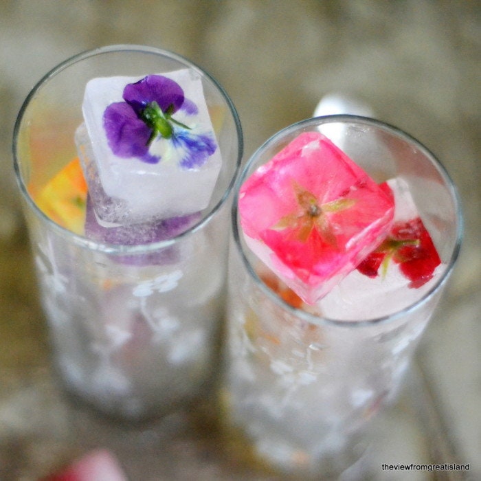 They have been made to look exactly like ice chips with tiny flowers preserved inside... inspired by the last photo. I saw that photo and shared it on our Facebook page in 2015, and have been obsessed ever since. I started experimenting the next year and finally - finally! - we have created a range that looks exactly like flowers preserved in ice.