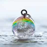 These perfect forget me nots have been placed in a "raw stone"; the shape was made from a gorgeous, gorgeous genuine Herkimer diamond - truly stunning. The "stone" is held in place with a handmade sterling silver claw grip setting, and comes on an 18" sterling silver chain.