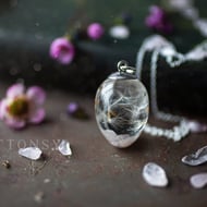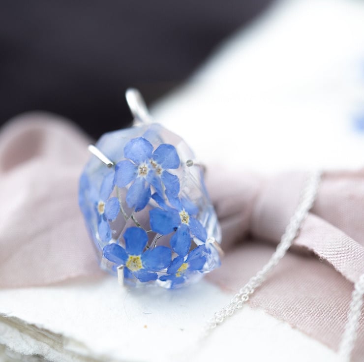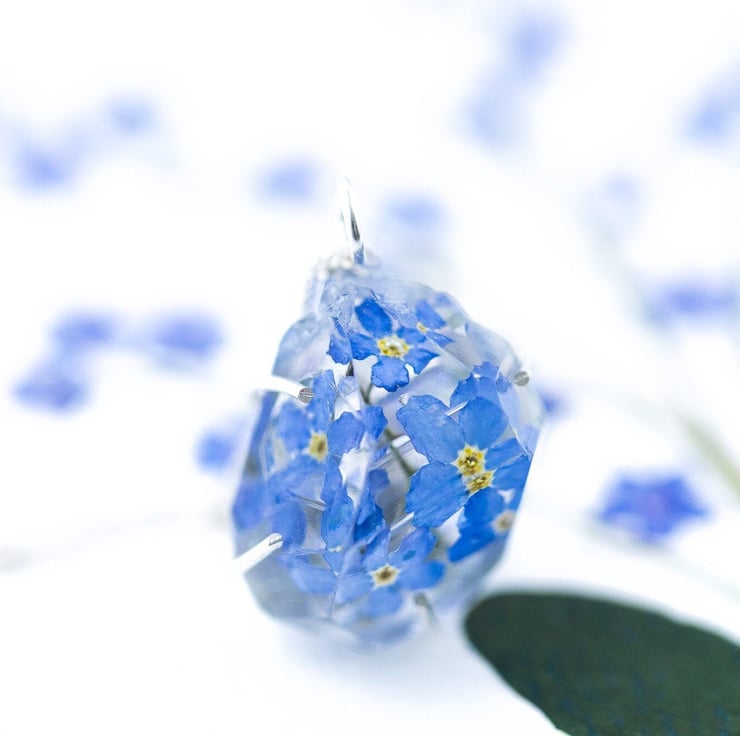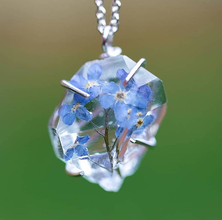 Forget Me Nots Necklace "Herkimer Diamond" Necklace Pressed Flower Jewelry Gifts