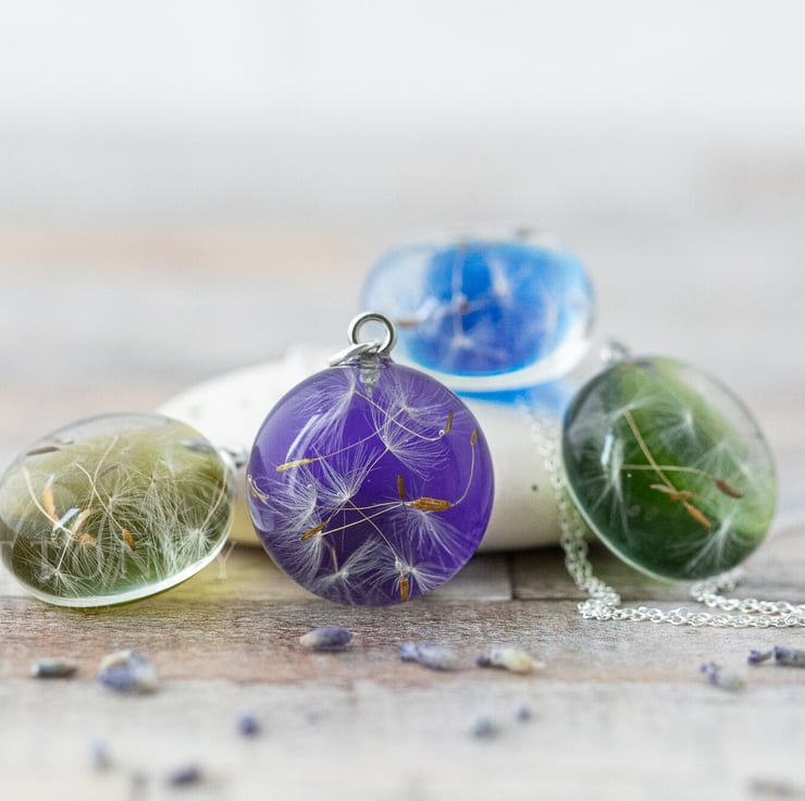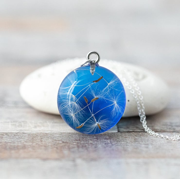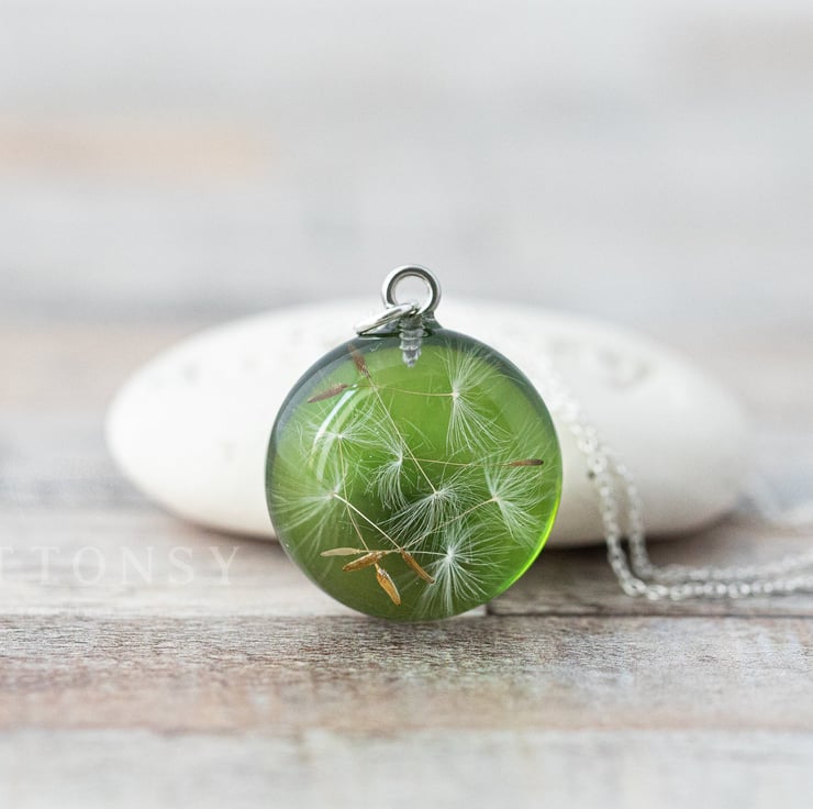 Beautiful dandelion wishes have been caught in a gorgeously, tactile "pebble". This is truly magical jewellery. It is delicate, and elegant, for women that love to dance in the rain.