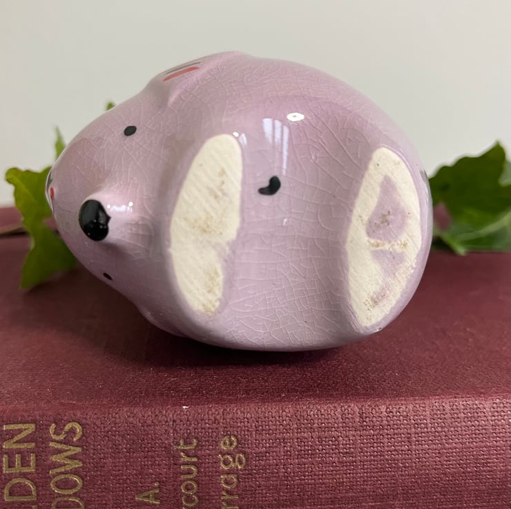 There is a pimple in the glaze on his bottoms and a few small shallow chips around the top edge. Glaze is also a little bit crackled.