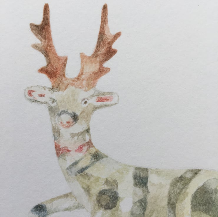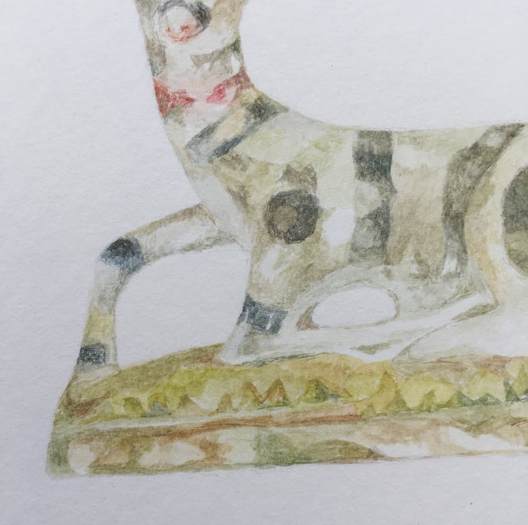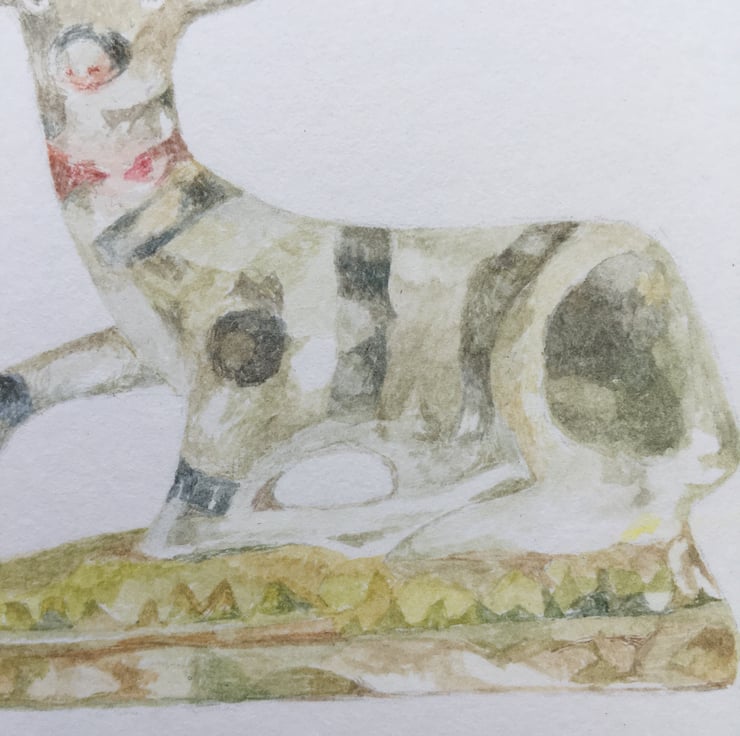 An original gouache painting of a chalkware deer. Gouache paints were used on 300gsm cold pressed acid free watercolour paper measuring 15cm by 15cm. The image size is approximately 9cm by 7.5cm. An original painting that would make a special gift for someone. The painting will be sent inside a board back envelope.