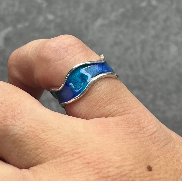 Blue Wave Ring, enamel ring, sea ring, ocean ring, sea themed jewellery, enamel,