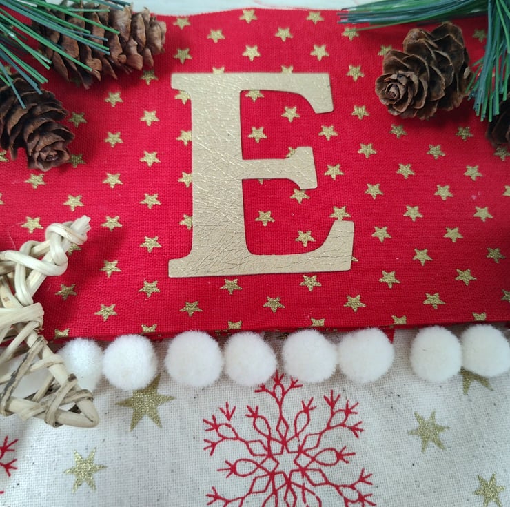 Name or Initial embroidered on cotton oval shape with scallop edge using a colour to match your stocking. It will come fused to your stocking. The bond is strong enough to allow for washing.