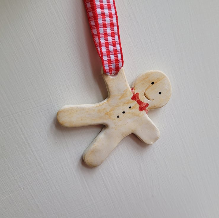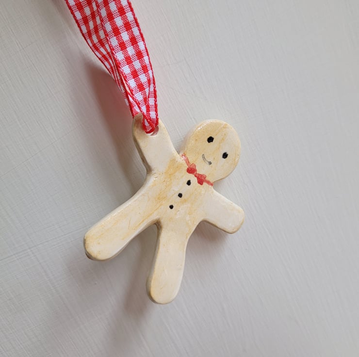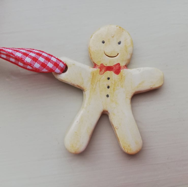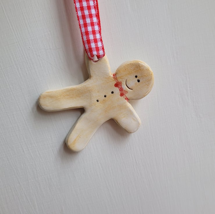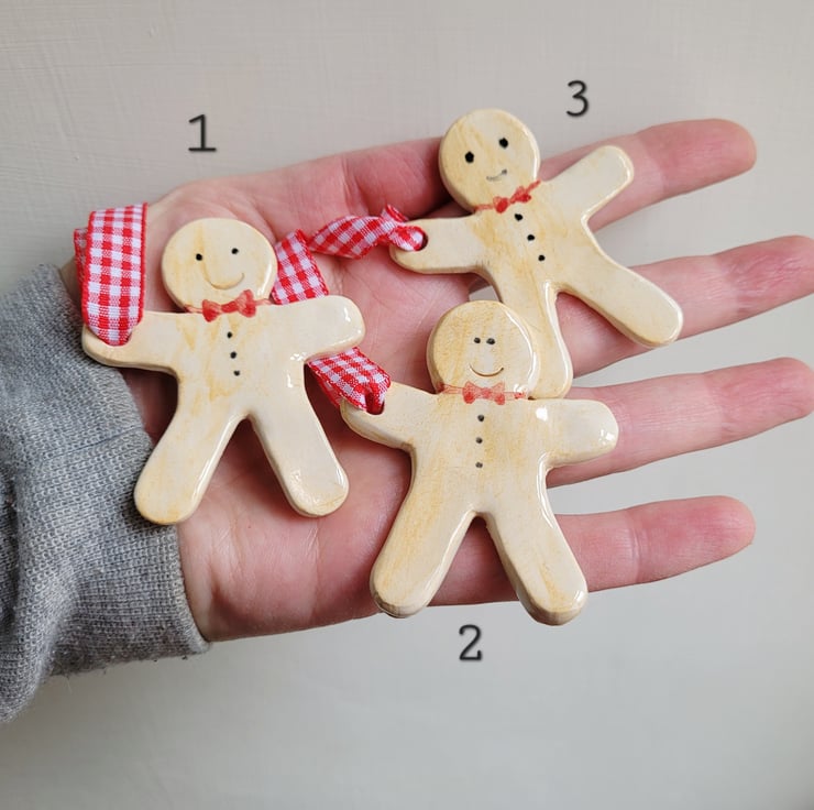 Hand made Christmas decorations for the tree .only number 3 option remaining ginger bread men hanging decoration with a set of different facial expressions. Each ginger bread traditional man has a unique personality.