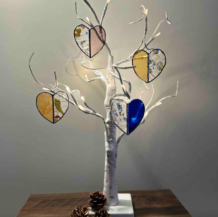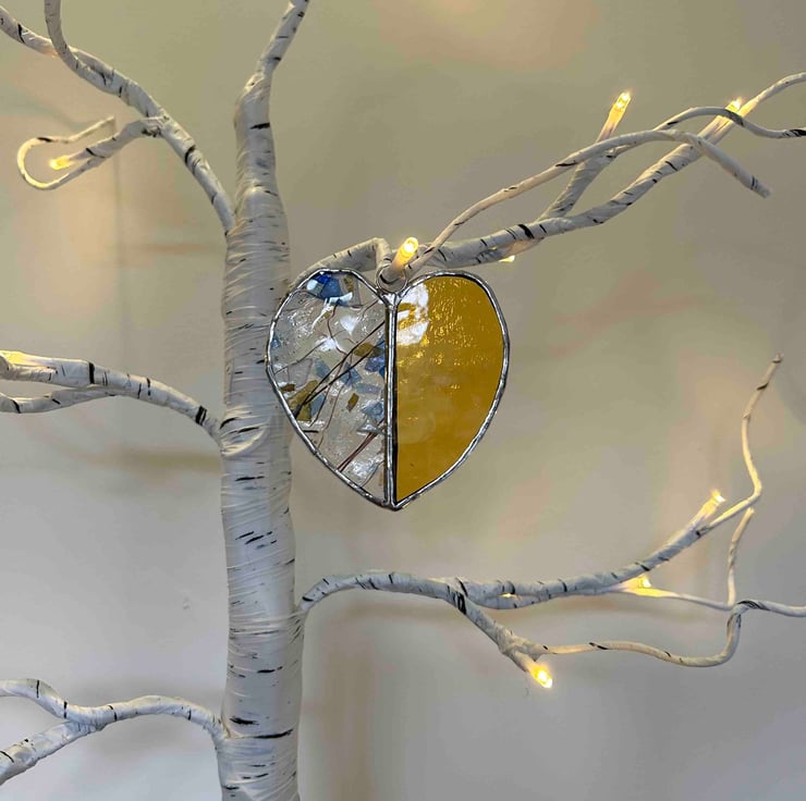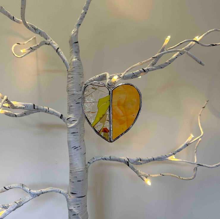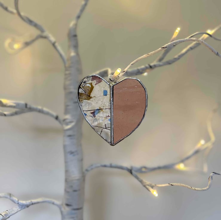 Hang it in a sunny window and watch the light dance through the vibrant colours. It also makes a great Christmas decoration, adding a touch of love and warmth to any space.