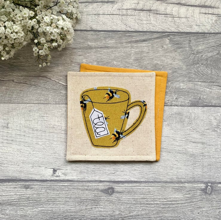 Tea bag wallet and coaster set in a fun mustard bee fabric.