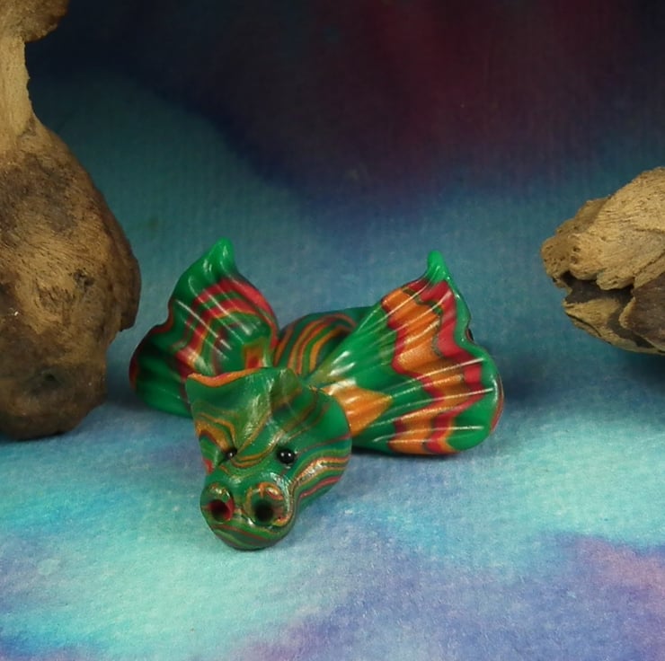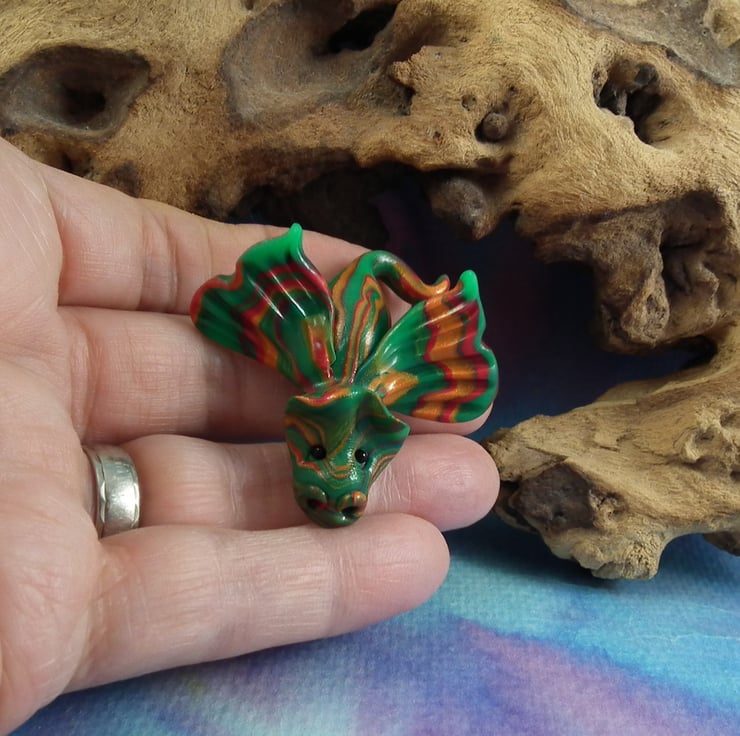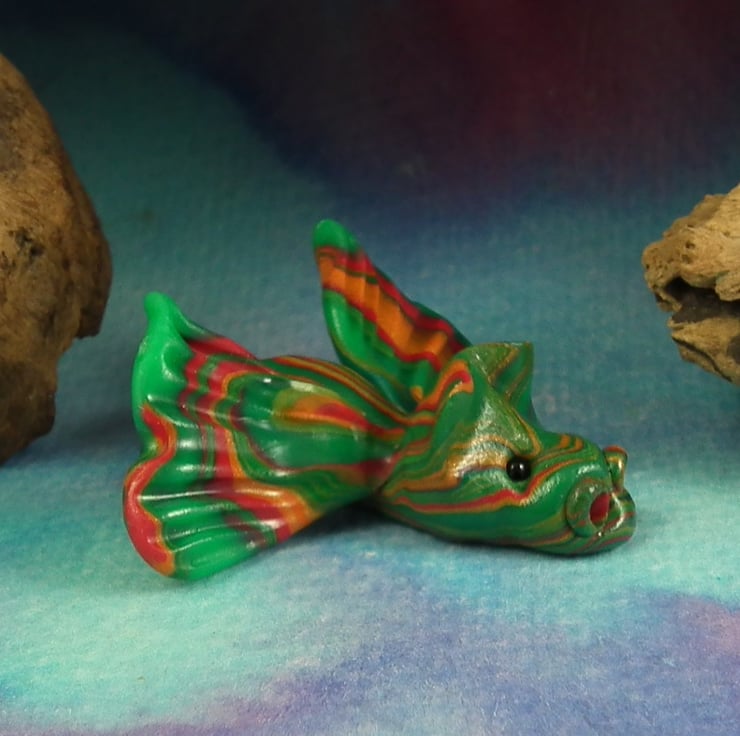 A 'one of a kind' creation having been entirely handmade without the use of moulds here at my studio on the Sussex Coast. Modelled with artist blend polymers before sealing with lacquer, Fyer is two inches from snout to tail ...