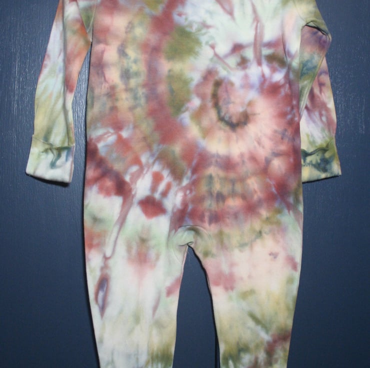 A gorgeous second chance babygrow created using a range of dark brown, red and green colours in a swirl pattern. Lovely soft cotton babygrow, perfect for day or as a sleep suit. This reminds me of the beautiful age lines found inside a tree trunk, and a little tree nymph!