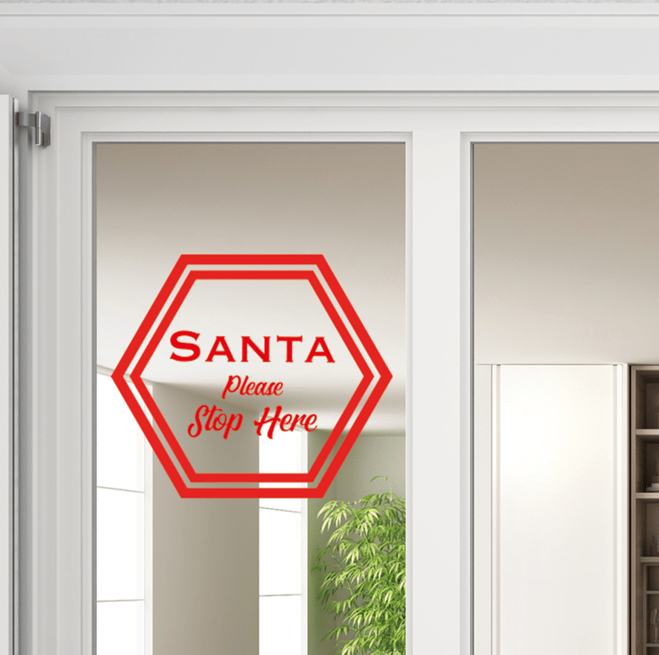 Santa Stop Here Window Sticker. Perfect for children's house decorations this Christmas Eve.