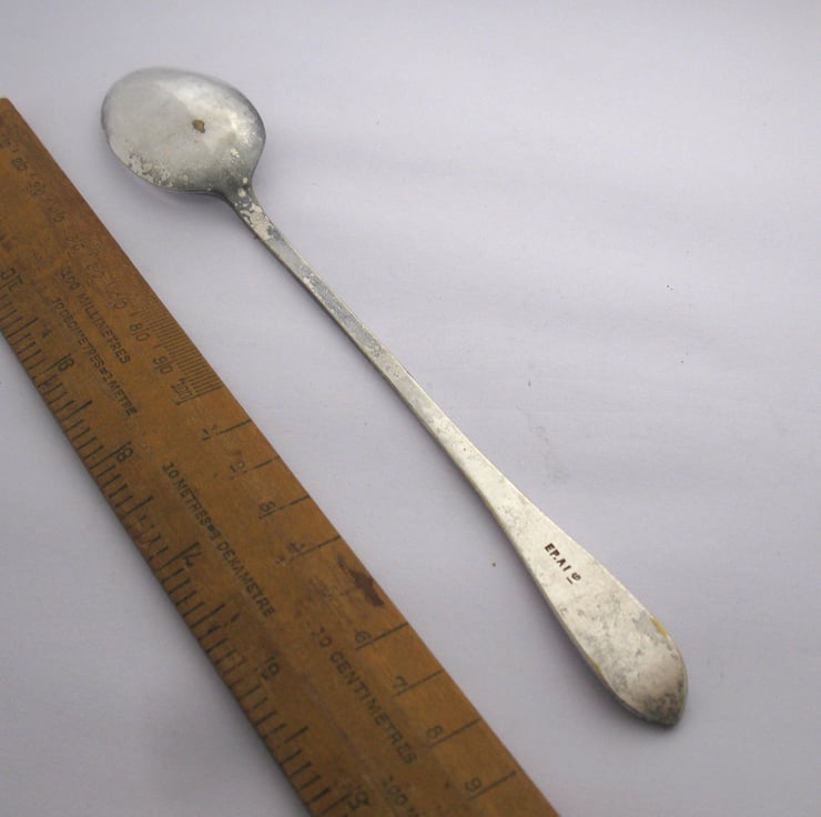 This listing is for ONE spoon. You will receive the spoon shown in the photographs. It's a shallow oval spoon with an elongated art deco style handle and it's approximately 20cm long. Good for lattes, cocktails or getting things out of tall jars.