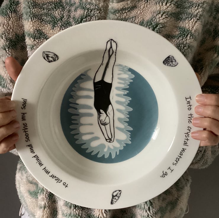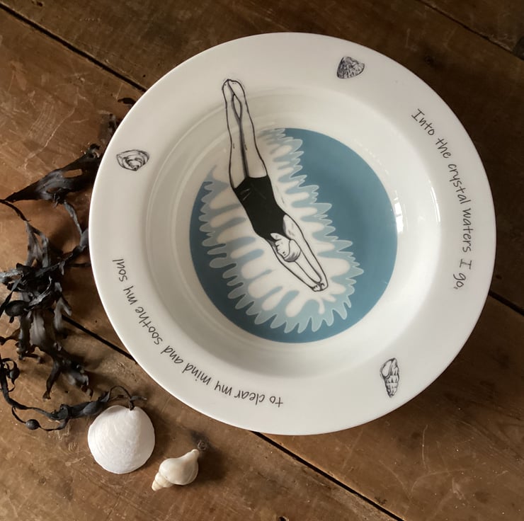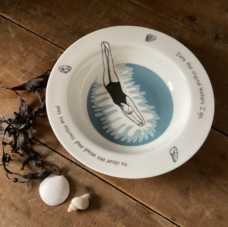 This beautiful design shows an individual female swimmer diving into the water. Around the edge are seashells and the words 'Into the crystal waters I go, to clear my mind and soothe my soul'. For all those who love to wild swim in the sea, rivers or lakes, or those who love to do lengths of their local swimming pool it's an ideal gift, or maybe just treat yourself!