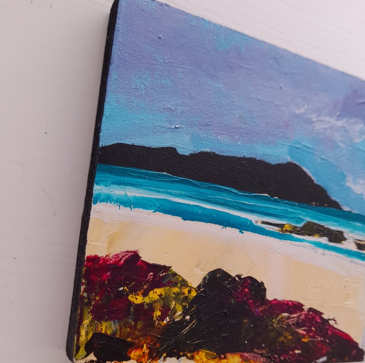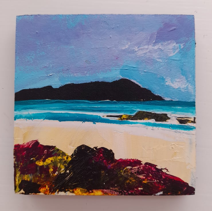 This 10 x 10 cm painting is varnished signed on the back and has a hook ready to hang. Great to brighten up a small corner or to give as a gift. signed on the back.