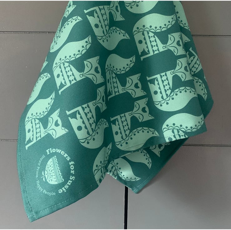 A bold fox design with a offset repeat pattern in reverse print in rich teal and duck egg, this teal towel adds a rich modern vintage colour pop to your kitchen.