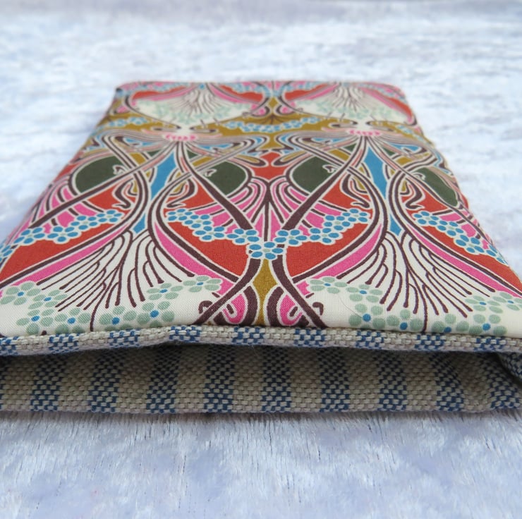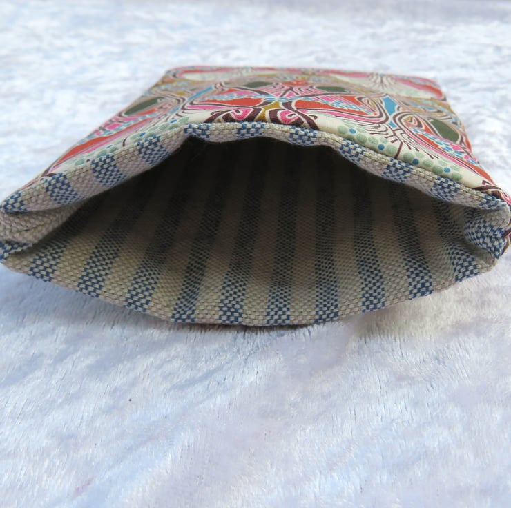 It has been backed with a lightly padded interfacing, and lined with a contrasting stripy linen.