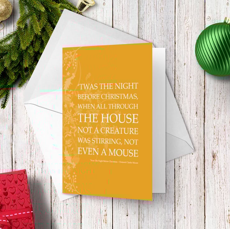 A Christmas Quote Card - Everyone can relate to this beautiful poem by author Clement Clarke Moore. Perfect for a book lover to celebrate Christmas or a birthday, or maybe you want to keep it for yourself, we are confident you will be happy with our greetings cards.