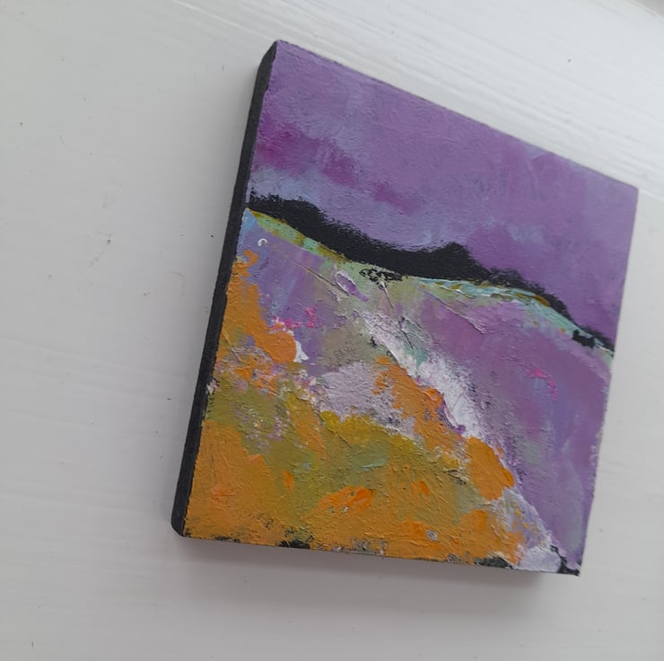This listing is for one 10 x 10 cm painting as shown. It is varnished signed on the back and has a hook ready to hang. Great to brighten up a small corner or to give as a gift.