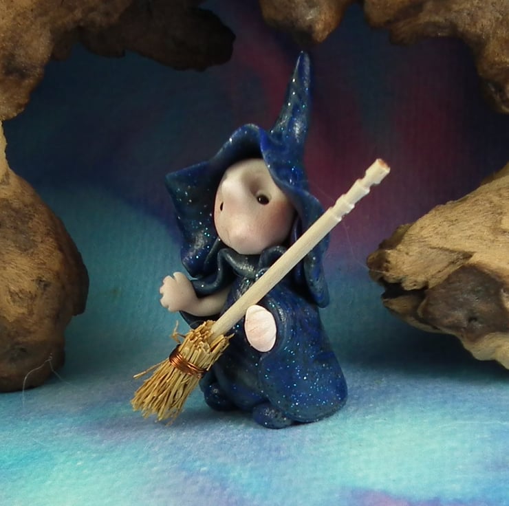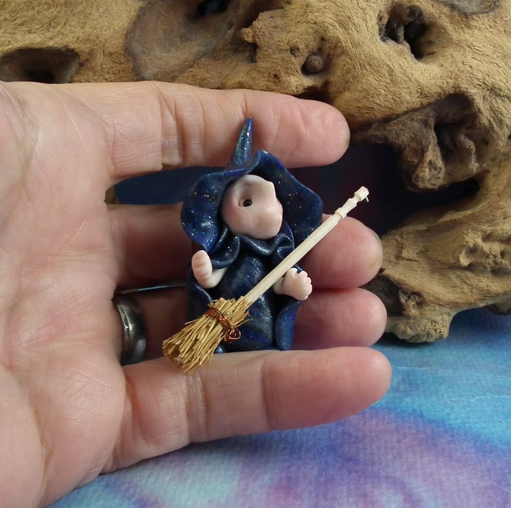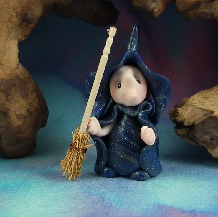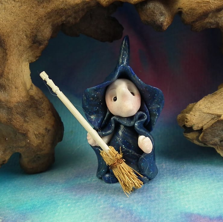 This is a 'one of a kind' creation having been entirely handmade without the use of moulds here at my studio on the Sussex Coast. Modelled with artist blend polymers before sealing with lacquer, Lena has sparkling black onyx eyes and loose handmade broomstick. She is just one and a half inches tall and has been instructed not to frighten the children ...