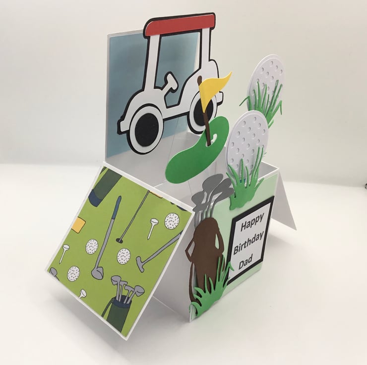 This is a handmade golf pop up card
