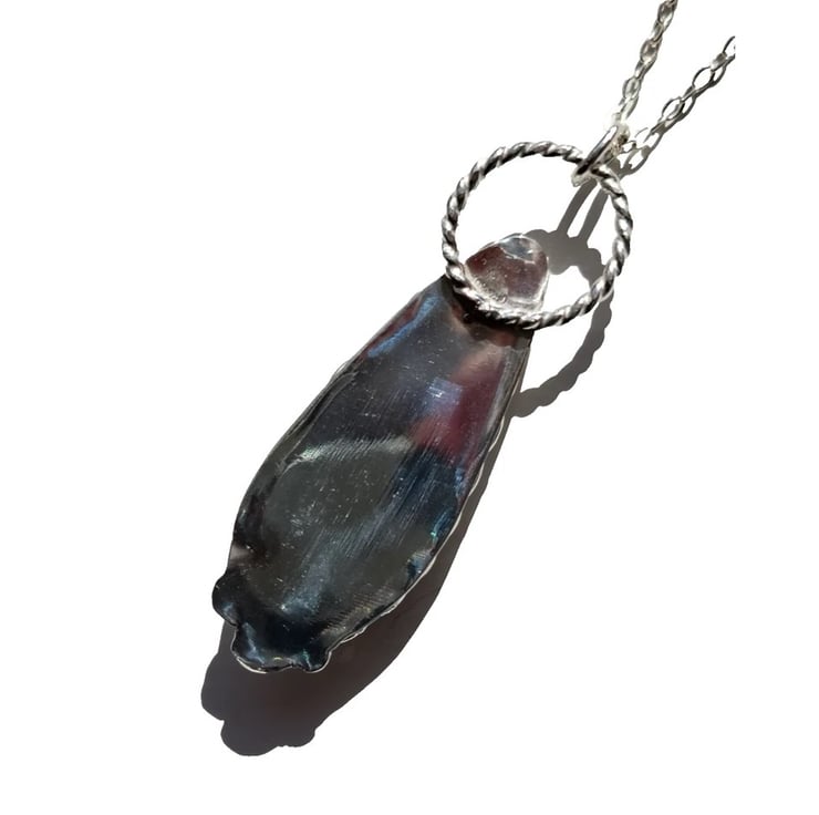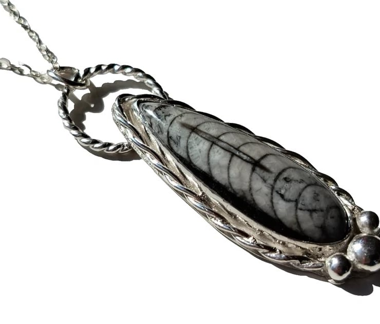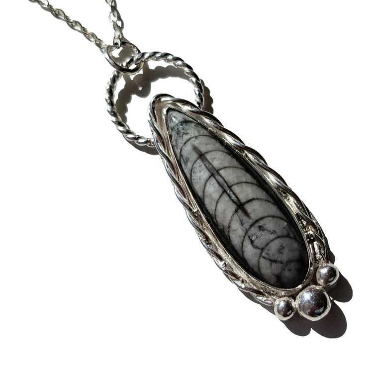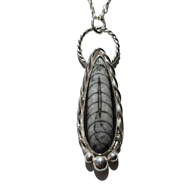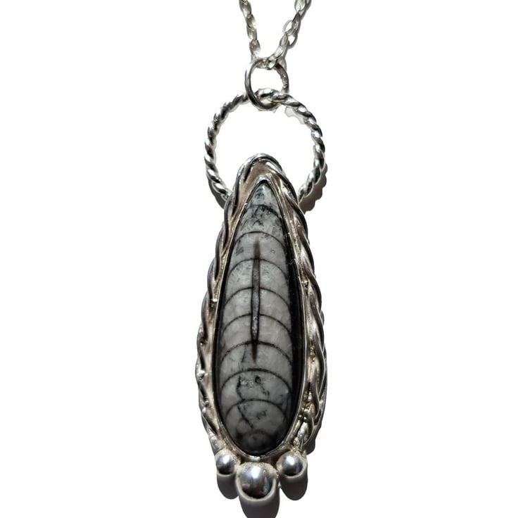 Orthoceras Fossil Necklace Jewellery Gift Recycled Silver Teardrop Pendant