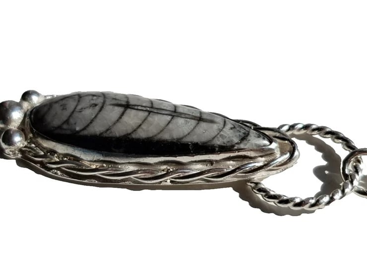 Handmade Recycled Sterling Silver .925 pendant with a fantastic specimen of an orthoceras fossil!