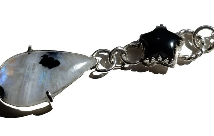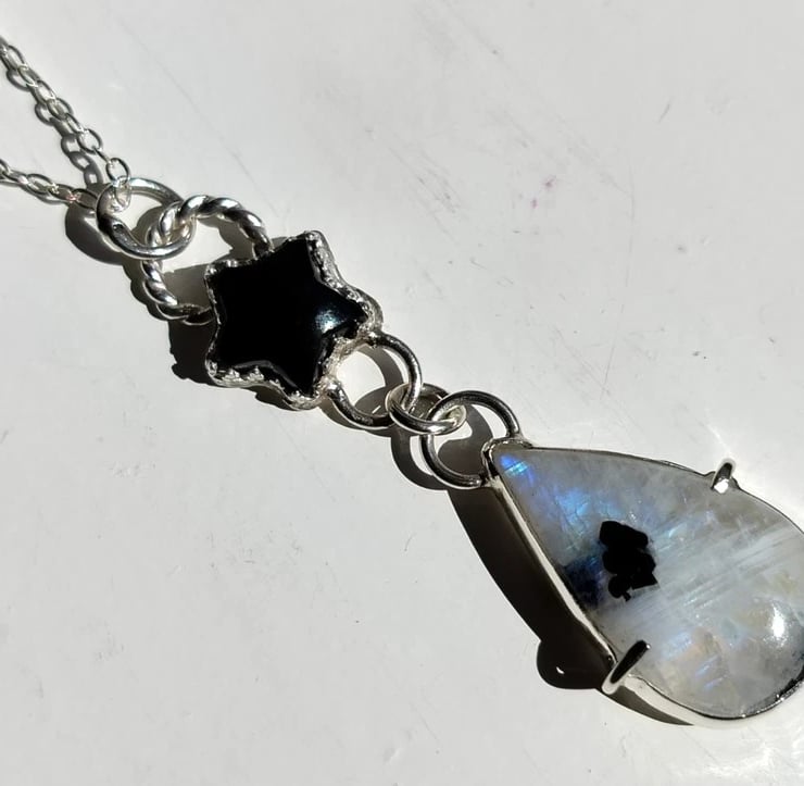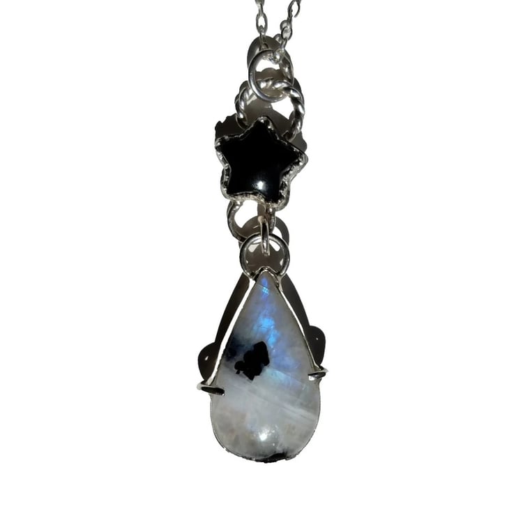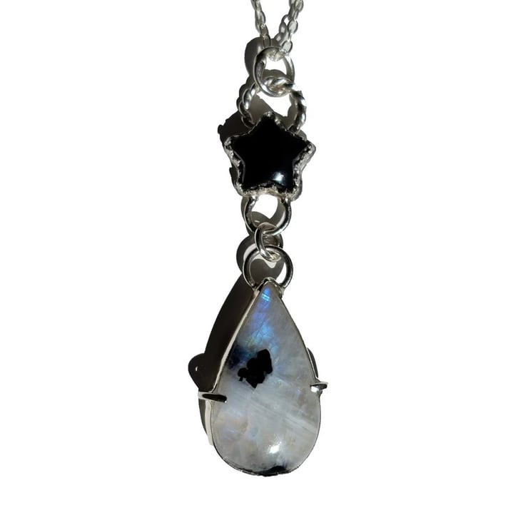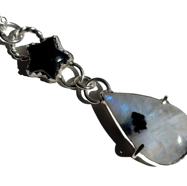 Necklace Silver Moonstone Tourmaline Onyx Star Jewellery Gift Teardrop Pendant