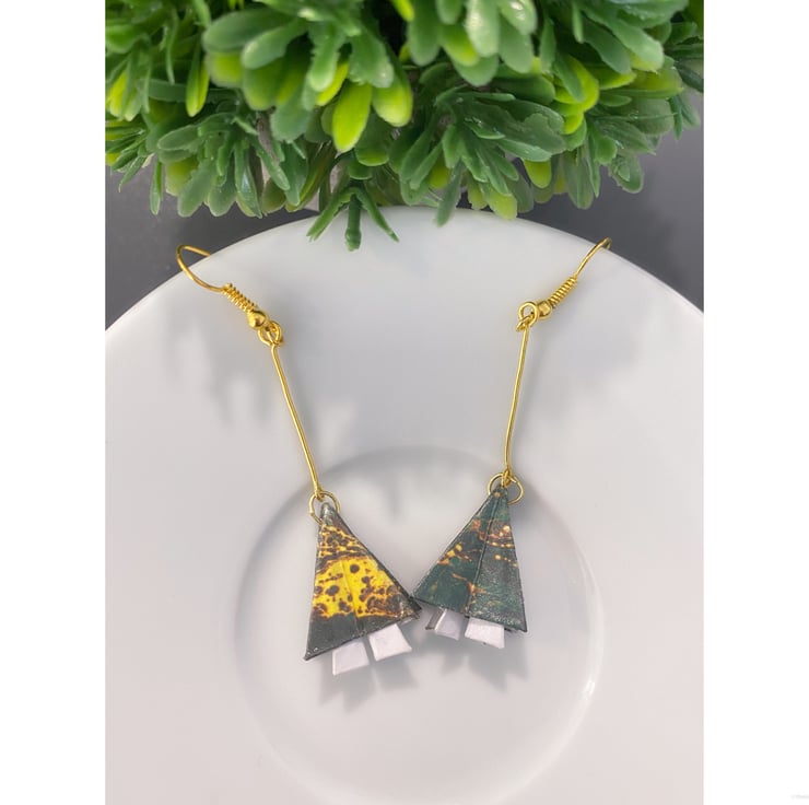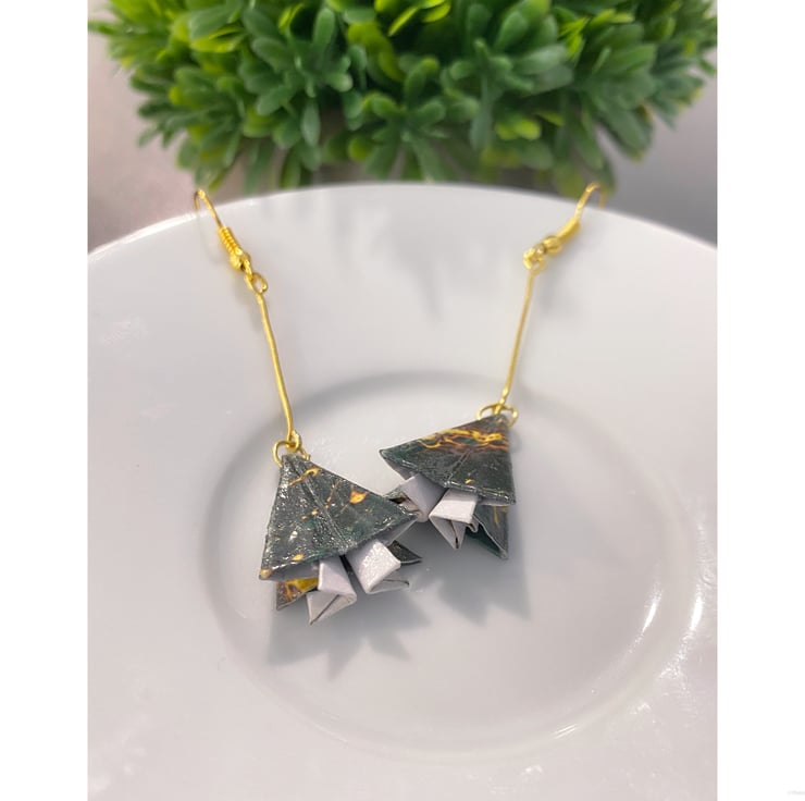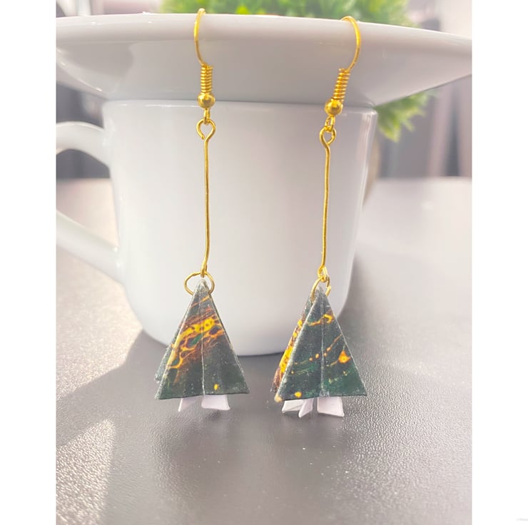 Handmade and carefully crafted origami tree earrings, each piece is unique.