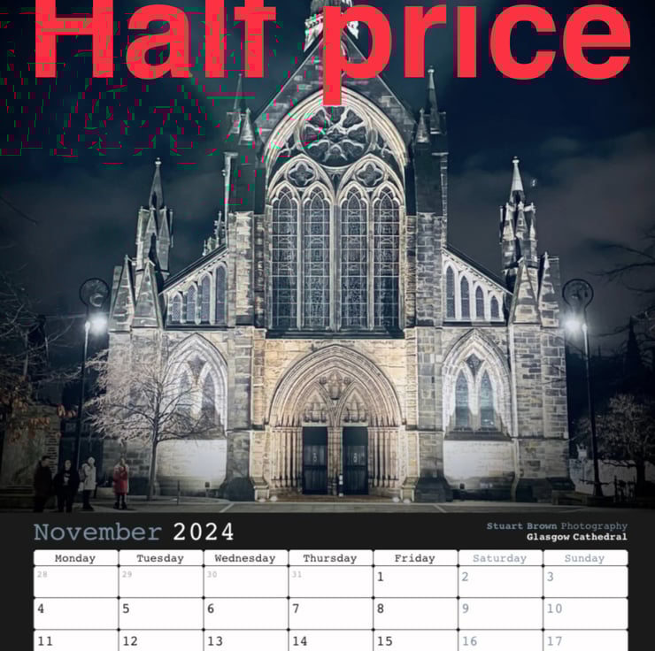 Our brand new calendar featuring 12 iconic Glasgow images in a variety of colour and black and white shots. We have been all over Glasgow this year capturing some unique architecture, famous venues and special views. Featuring spaces to write in key appointments, birthdays, holidays etc this is a practical and colourful calendar to keep you inspired about your favourite city throughout 2024.