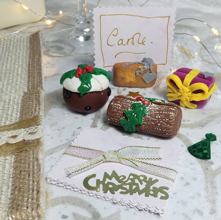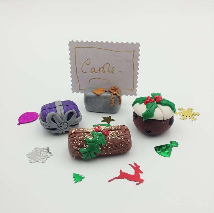 Make your Christmas table even more festive and your friends feel extra special with these unique, individually hand crafted polymer clay name place card holders.