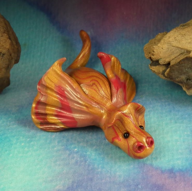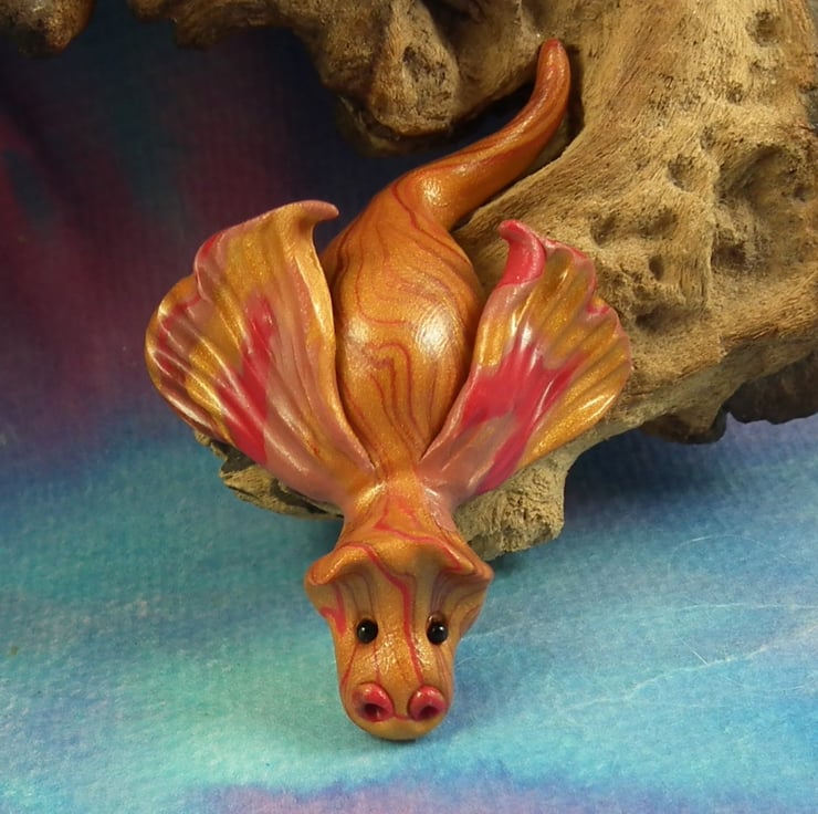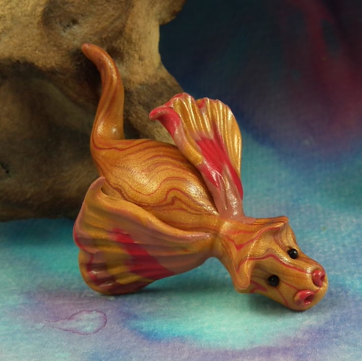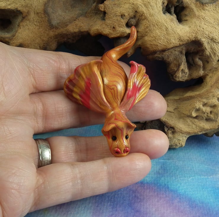 A 'one of a kind' creation having been entirely handmade without the use of moulds here at my studio on the Sussex Coast. Modelled with artist blend polymers before sealing with lacquer, Feerah is two inches from snout to tail ...
