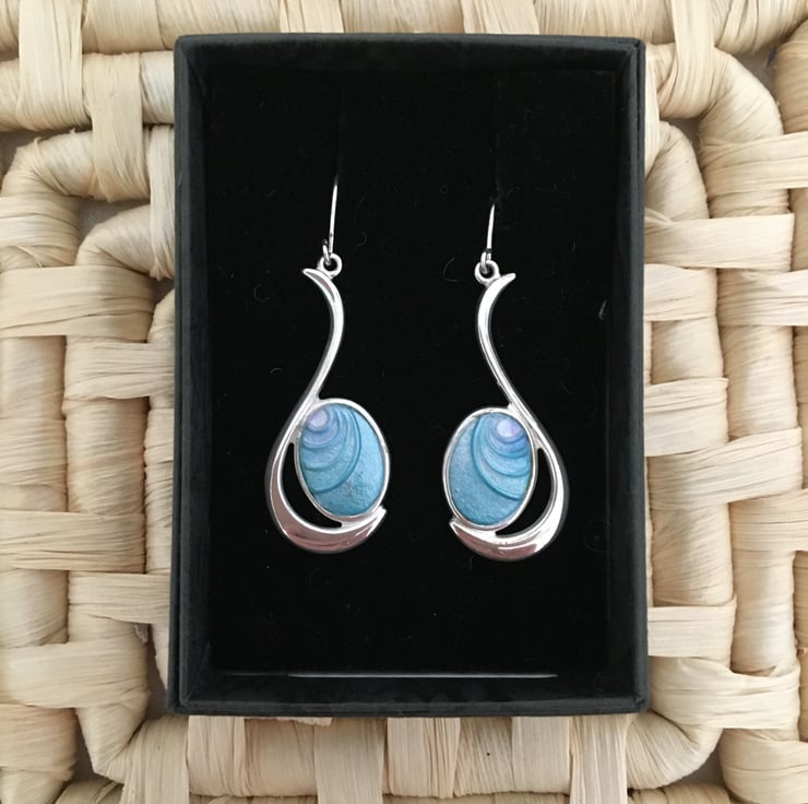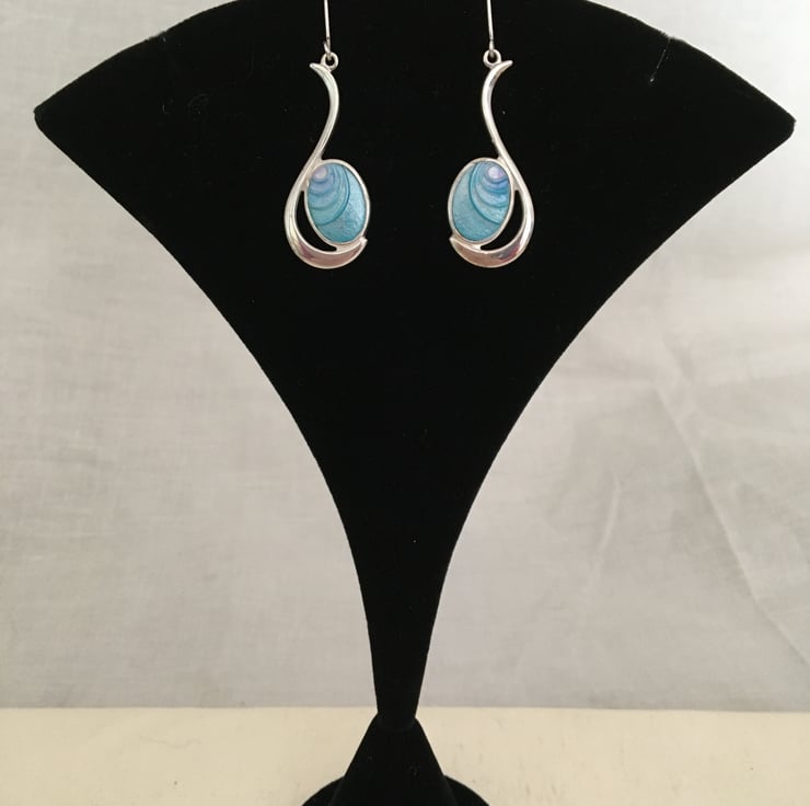 Handcrafted azure centred earrings in high quality silver plated setting.