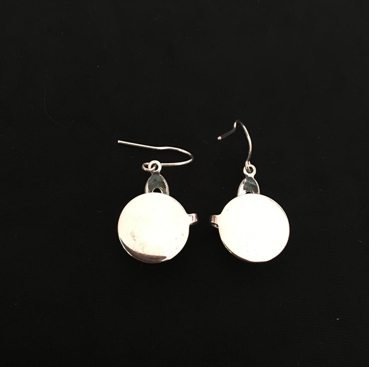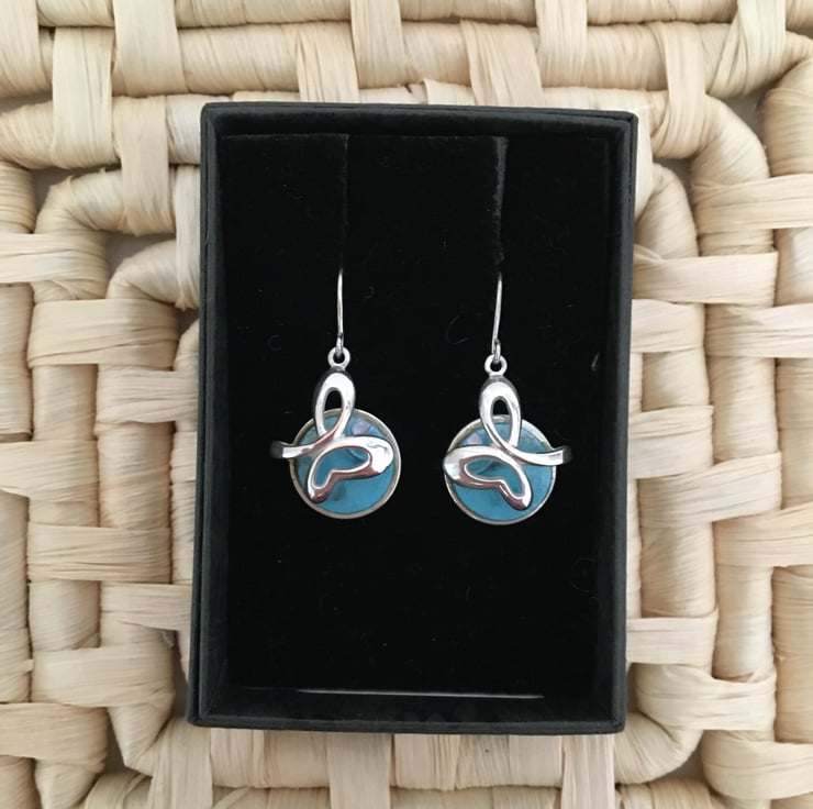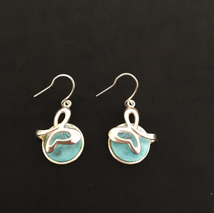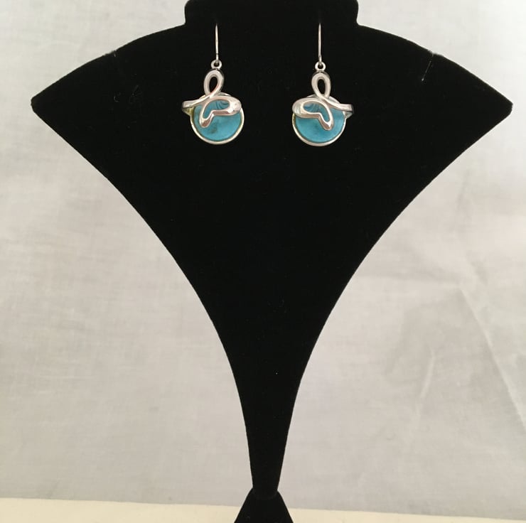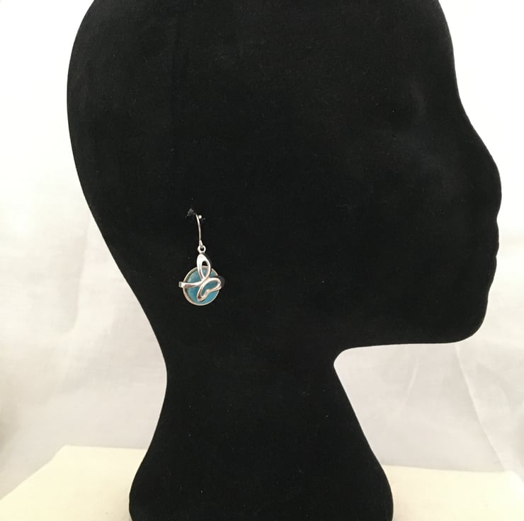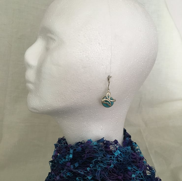 Unusual handcrafted azure centred earrings in high quality silver plated setting.
