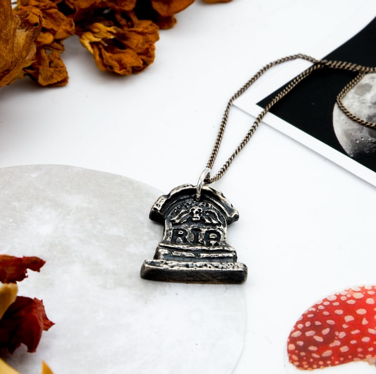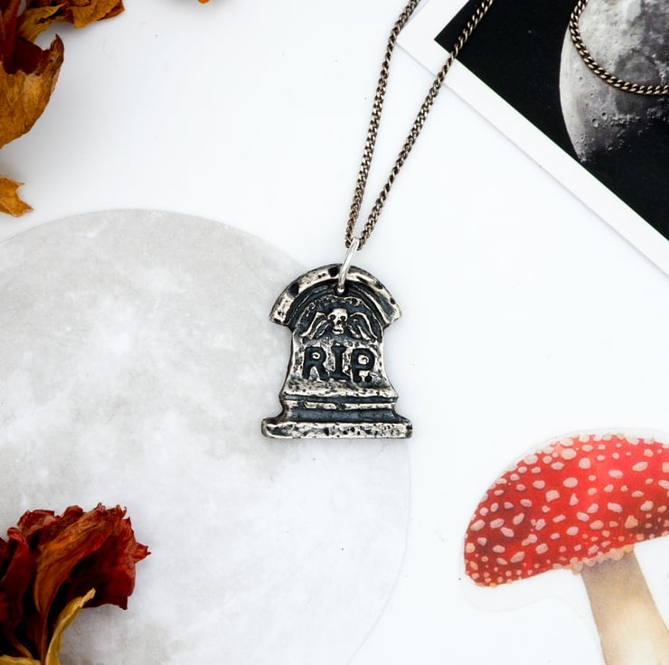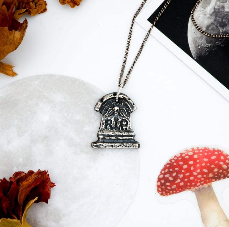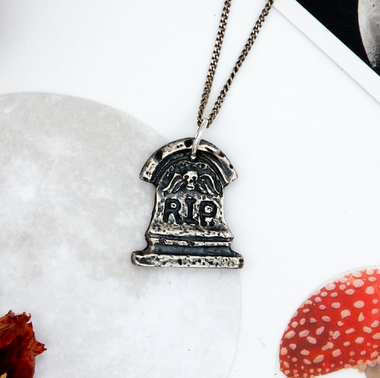 Welcome to my listing for this necklace handmade, solid fine recycled silver hand-cast Memento Mori gravestone necklace.