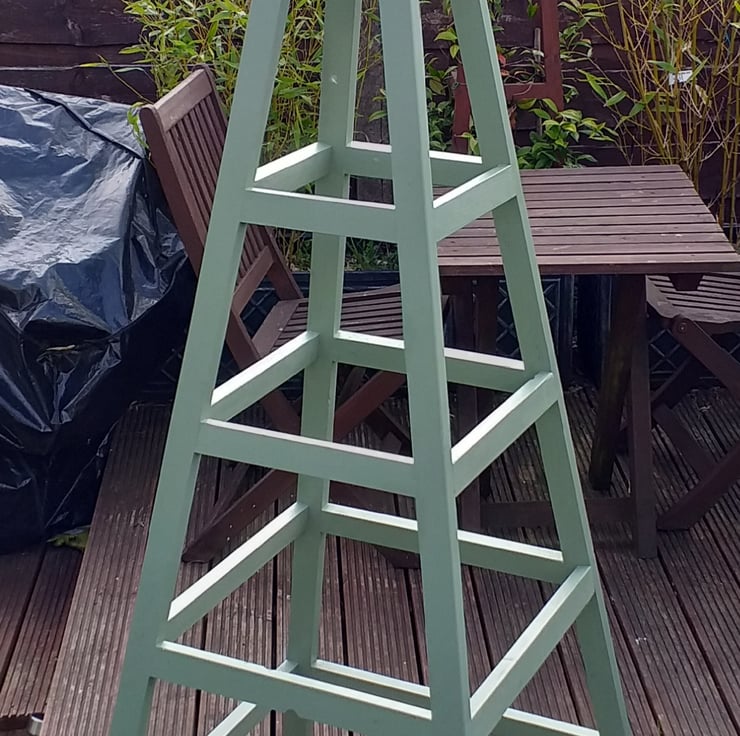 The finished obelisk is then sanded before being given at least 3 coats of either woodstain or exterior coloured wood paint.