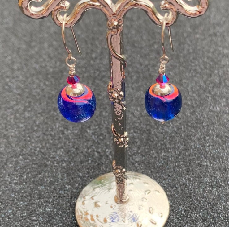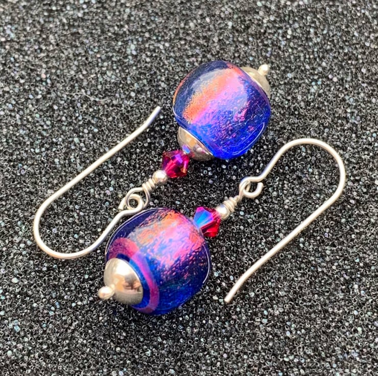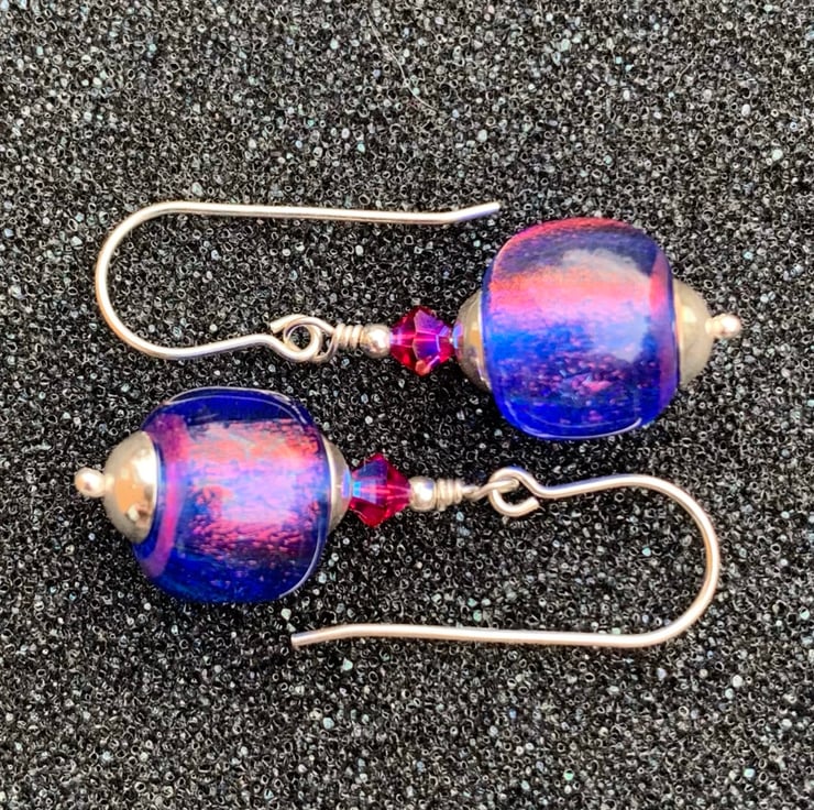 Shimmering dichroic glass beads - shift between blue & cerise pink - divine!