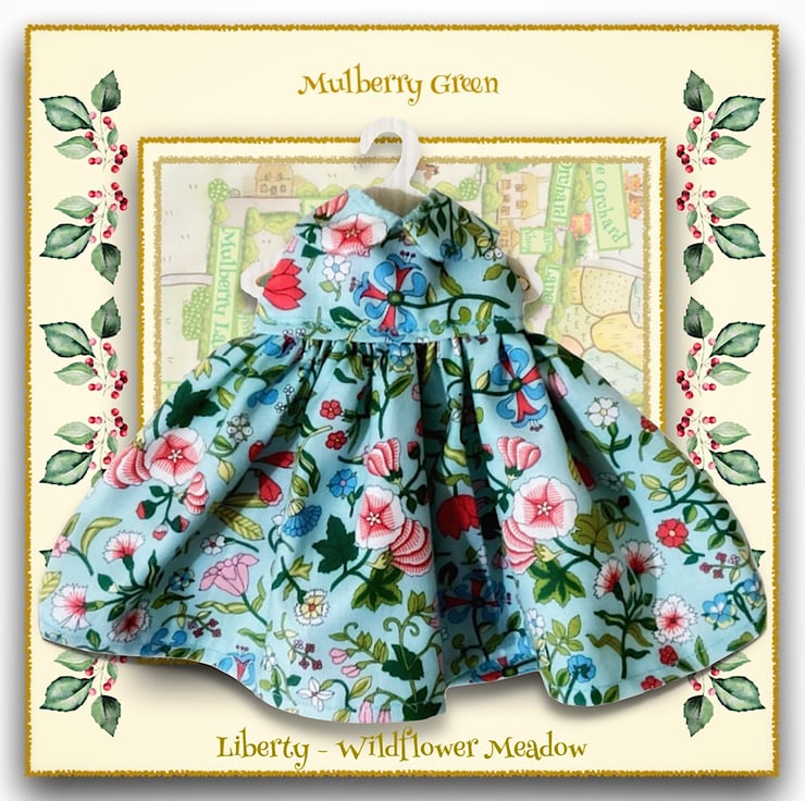 A gorgeous little dress in Liberty designer fabric to fit the Mulberry Green characters. The dress is made from best quality cotton and has a Peter Pan collar and a lined bodice.