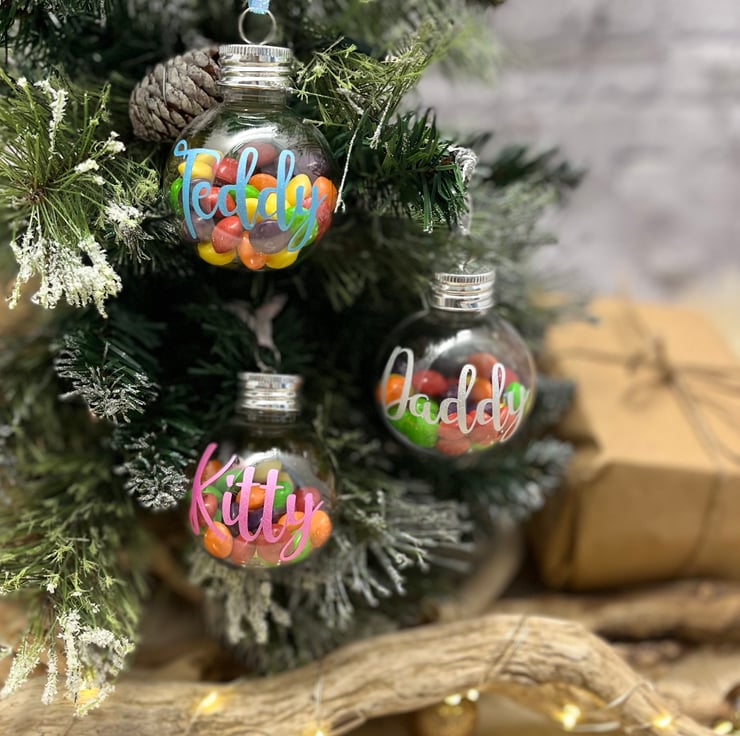 These personalised Christmas baubles will be an absolute hit this Christmas. They make a great Christmas gift/treat and or decoration! They will look great on the Christmas tree, make a good addition to a Christmas Eve box, a stocking filler or as a party favour or table decoration.