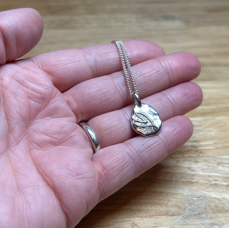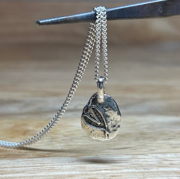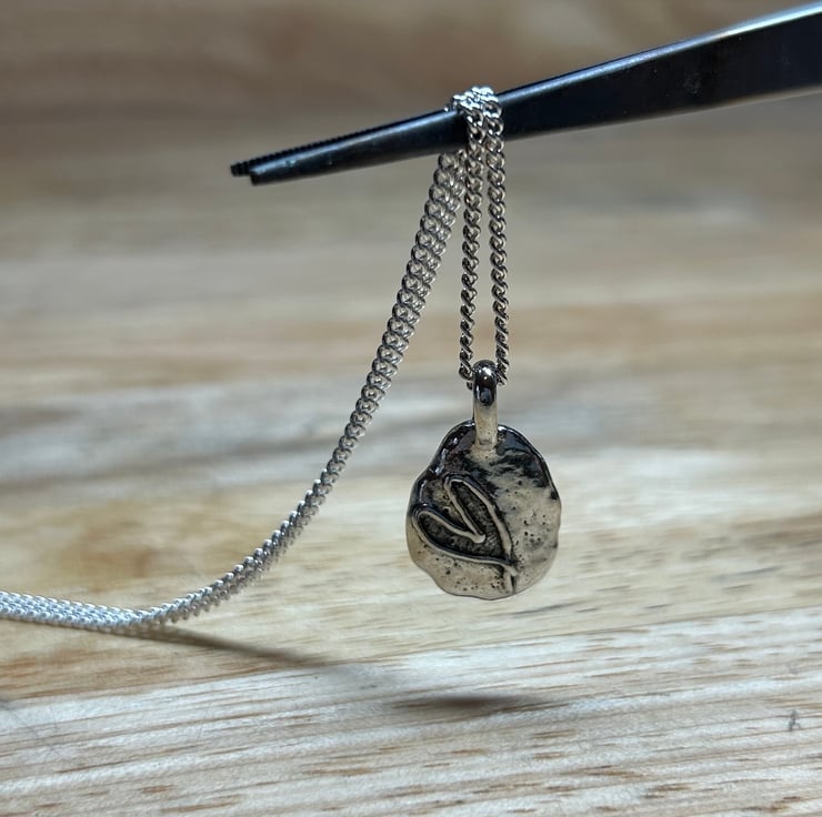 Gorgeous solid sterling silver unique heart detail pendant. This pendant has been created by melting down silver into an irregular shape and adding a lovely little heart. Perfect gift or treat for yourself! Has been hallmarked for authenticity of the sterling silver. Comes on an 18’’ length sterling silver chain, please state if shorter or longer chain required in notes upon ordering.