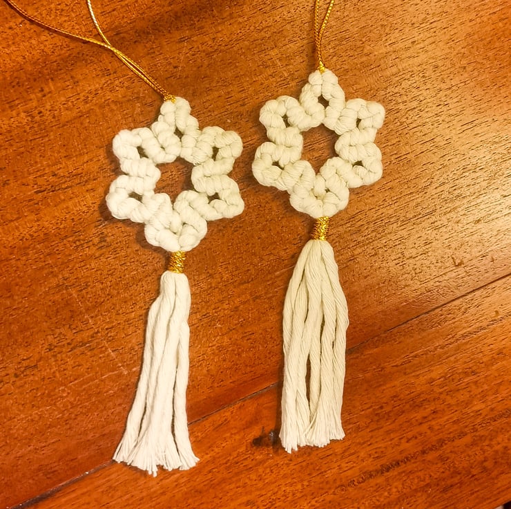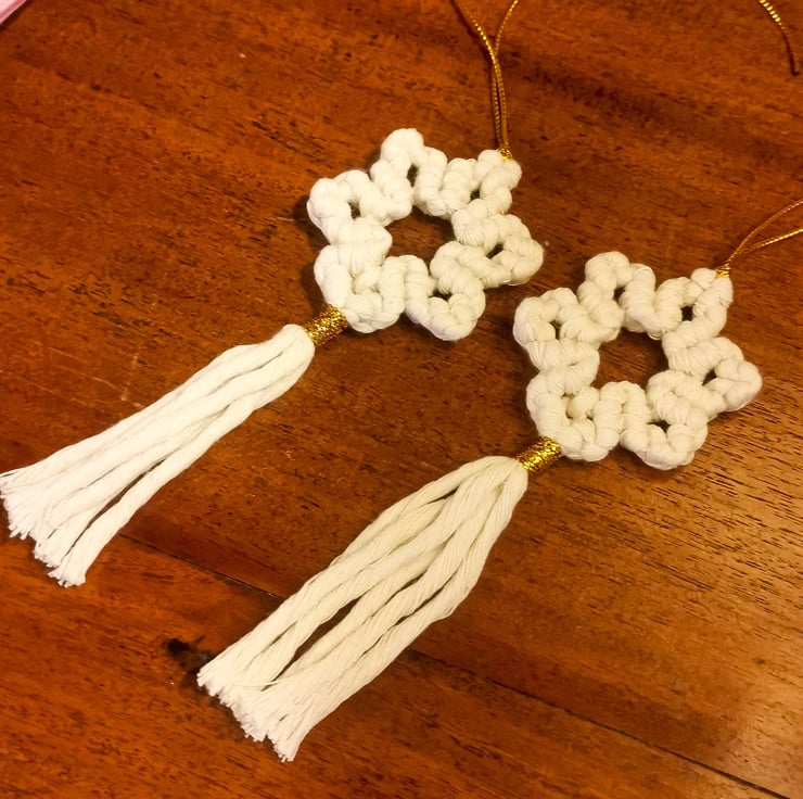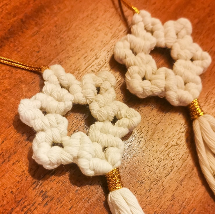 Christmas Macrame Ornaments, set of 2 - White Stars FREE UK P&P