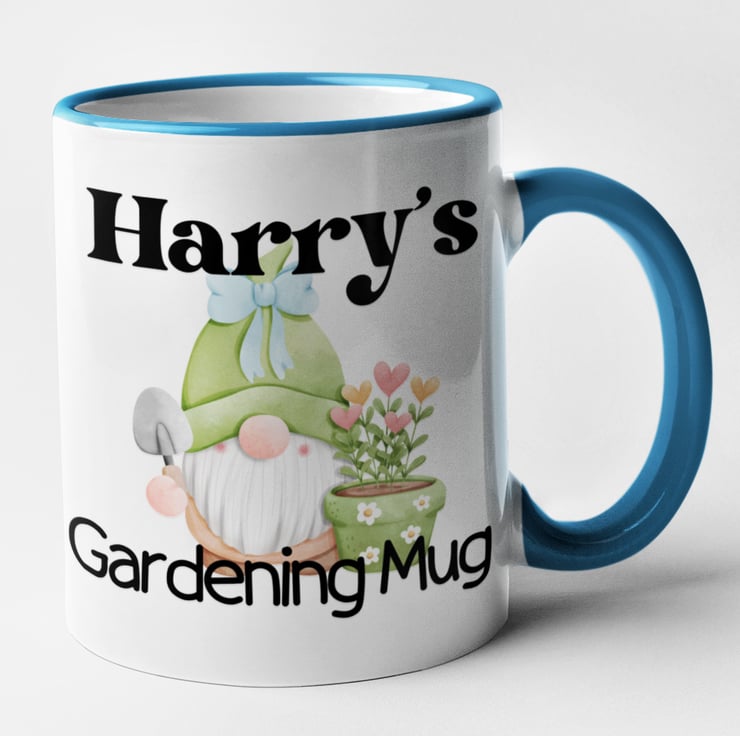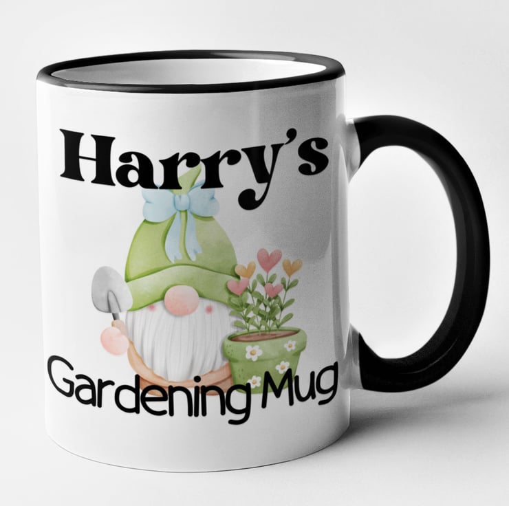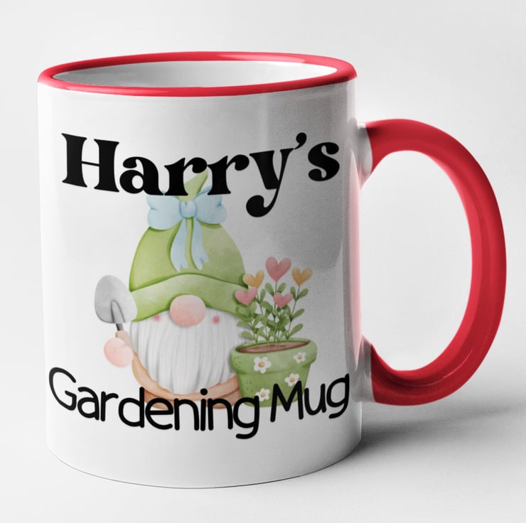 Personalised MALE Gnome GARDENING Mug - novelty gardener themed Gift