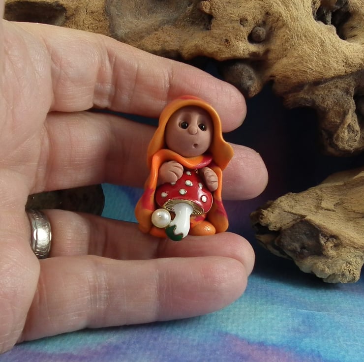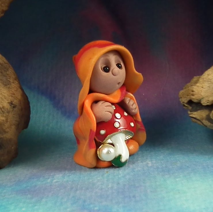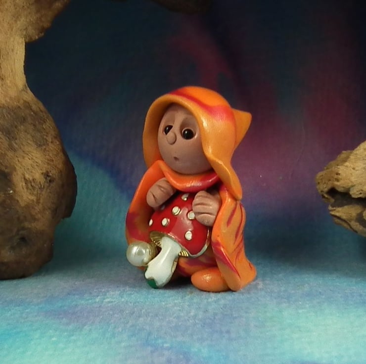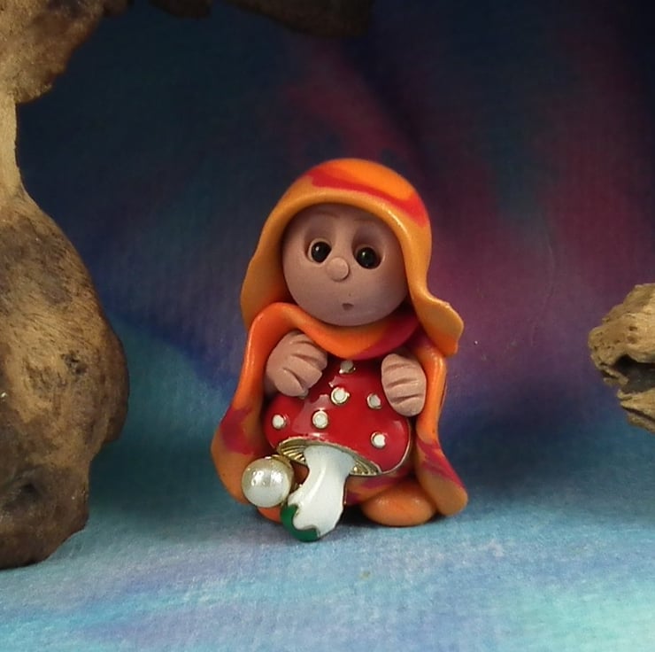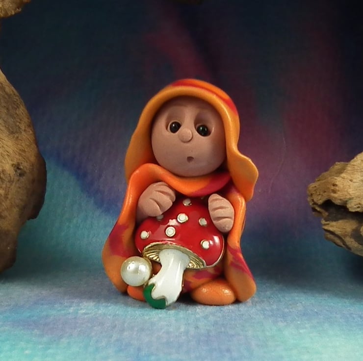 This is a 'one of a kind' creation having been entirely handmade without the use of moulds here at my studio on the Sussex Coast. Modelled with artist blend polymers, blushed before sealing with lacquer, Crizzi has sparkling black onyx eyes and garden robes. Crizzi the Garden Gnome is just one and a half inches tall.
