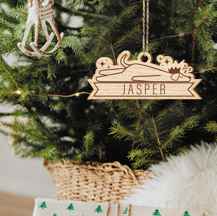 Introducing our Sleeping Dog Christmas Decoration - a perfect way to add some personal flair to your holiday decor. With a custom dog name bauble, it's the perfect keepsake for you or the dog lover in your life. Order now and let the festive fun begin!