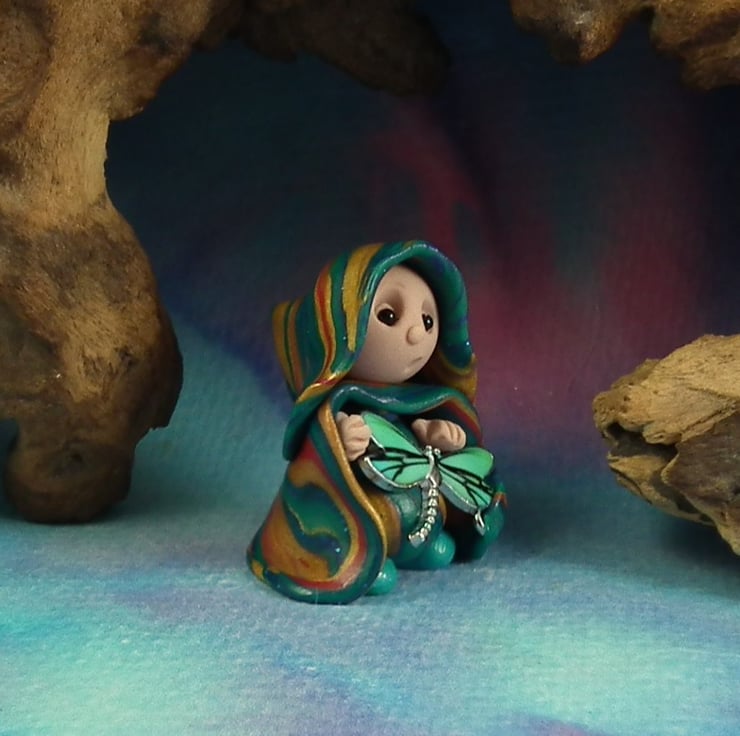 This is a 'one of a kind' creation having been entirely handmade without the use of moulds here at my studio on the Sussex Coast. Modelled with artist blend polymers, blushed before sealing with lacquer, Trella has sparkling black onyx eyes and variegated robes. Trella the Magical Gnome is just one and a half inches tall.
